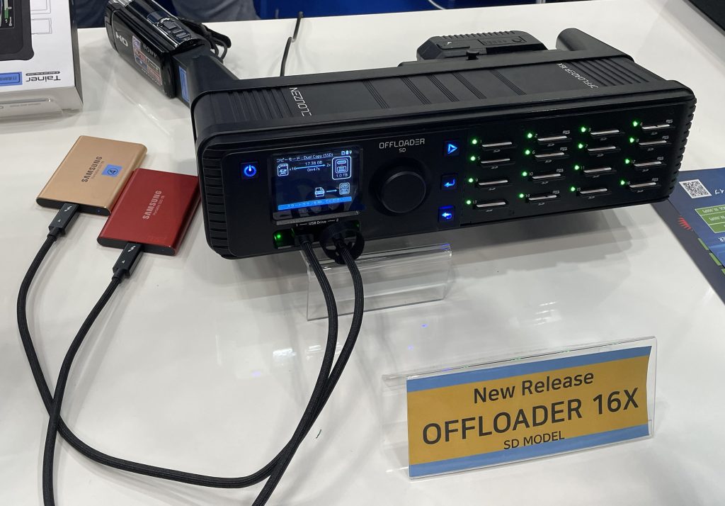 一度に16枚のカードを高速にコピーする専用機。スタンダード版はSD、8枚、CFexpress TypeA、Bが4枚、TypeC接続のカードリーダー4系統からまとめてコピーができる。SDカード版は16枚のSDカード(microSDカード最大8枚)からまとめてコピー。こちらはSSD内蔵ではなく、USB-C接続のSSDにコピーする。