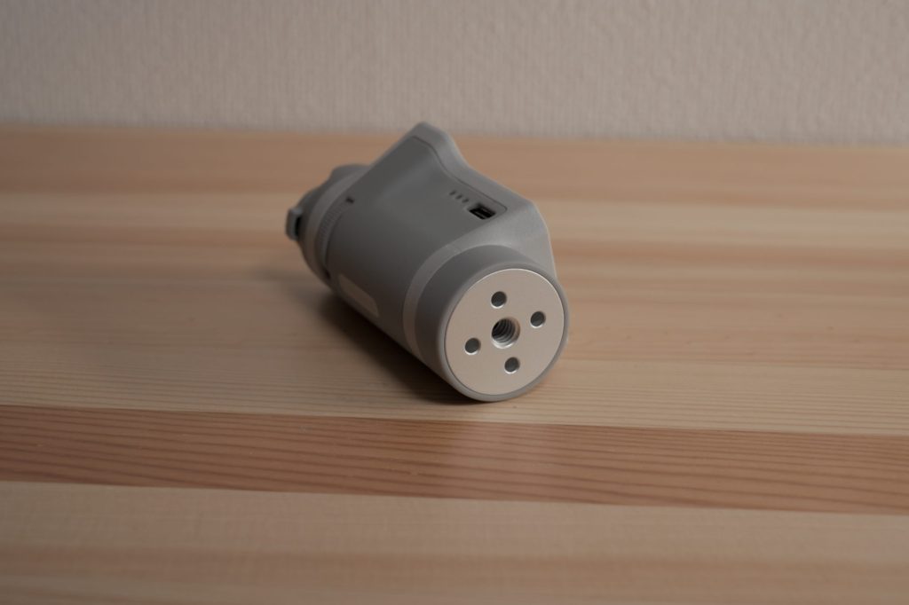 TILTA Khronos Liteは、その問いに対する一つの答えだと感じています。軽すぎず、重すぎず、過度に主張しない。それでいて、安っぽさはありません。このバランス感覚こそが、本機の最大の魅力です。その証拠に、おしゃれなデザインのコントロールハンドルの底面には1/4インチネジ穴があります。