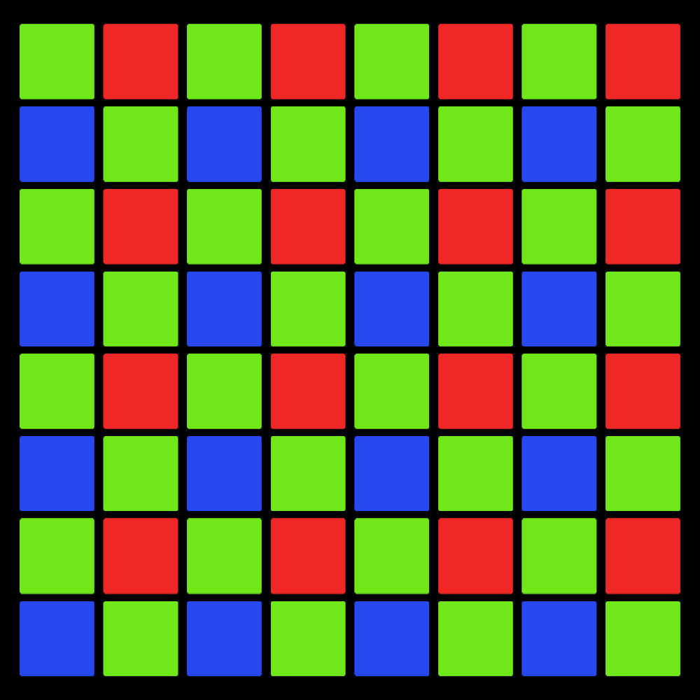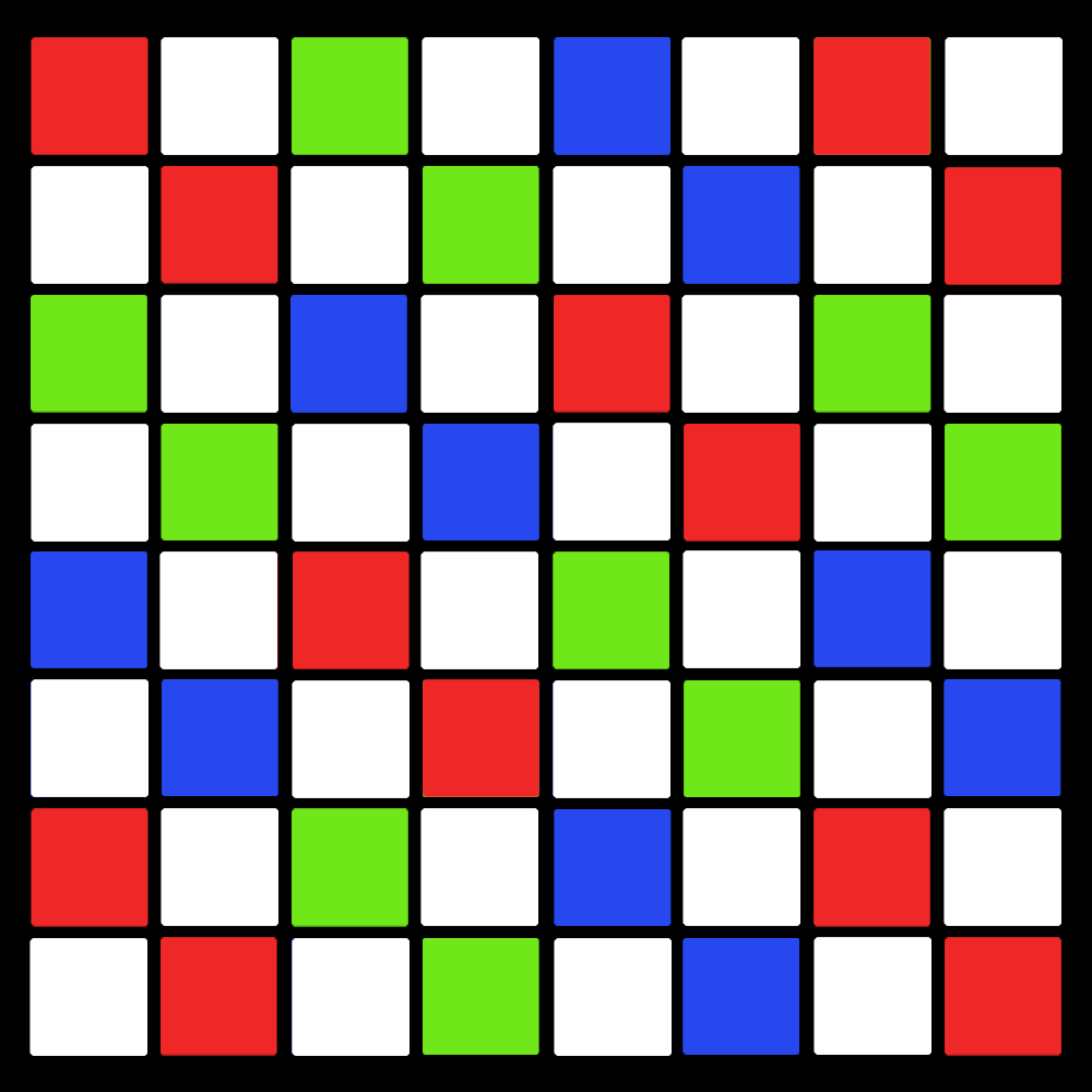 PYXIS 12Kに搭載された「RGBWセンサー」は35.64mm×23.32mmのフルフレームサイズ。2.9ミクロンのピクセルピッチで最大12,288×8,040pixでの4:3オープンゲート収録に対応しています。ユニークなのは画素の配列で、従来多くのデジタルカメラ(シネマカメラも含みます)に採用されてきたベイヤー配列ではなく、6×6のピクセルグリッドに対してR、G、Bのピクセルがそれぞれ6つずつ配置されます。残りはカラーフィルターを持たないW(白色)のピクセルで構成され、これによって従来のものよりも大幅に低照度環境での感度が向上し、またフィルターのパターンの繰り返しが広くなったことでモアレなどの発生も極めて少ないというものになっています。
