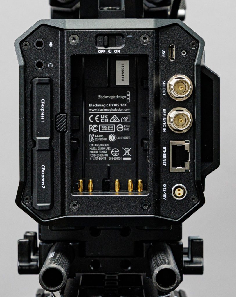 注意しなければならないのはPYXIS 12Kとセンサーを同じくする上位機のURSA CINE 12Kの電源は24VのBマウントというさらに大電圧を必要とする設計となっており、両者を比較するとフレームレートの上限に違いがあったりするため、同じセンサーとはいえURSA CINE 12KとPYXIS 12Kでは全く同じ画質と考えるのは早計です。