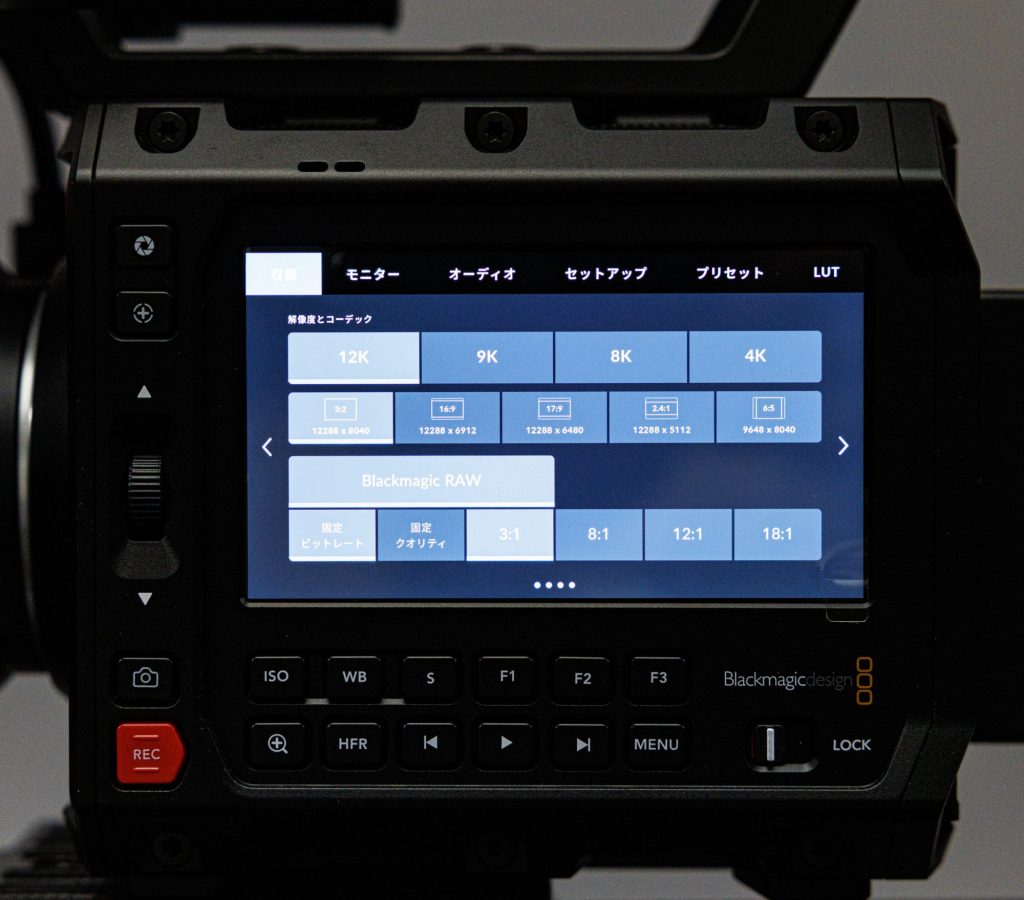 解像度は先述の12K、8K、4Kに加えてS35相当のクロップで9Kの設定もあります。クロップ設定についても、フルフレーム、スーパー35に加えてスーパー16やさらに小さいHD切り出しなどのオプションがあったPYXIS 6Kに比べてフルフレームかS35クロップ9Kの選択肢しかないというのはやや物足りなさを感じます。
