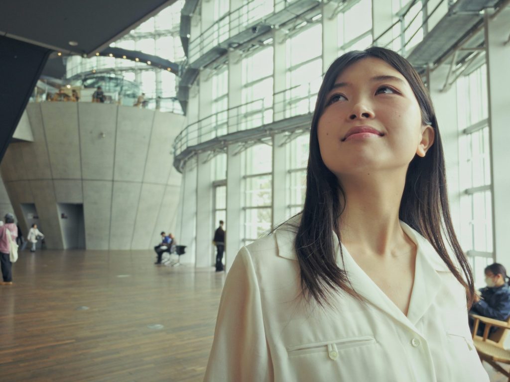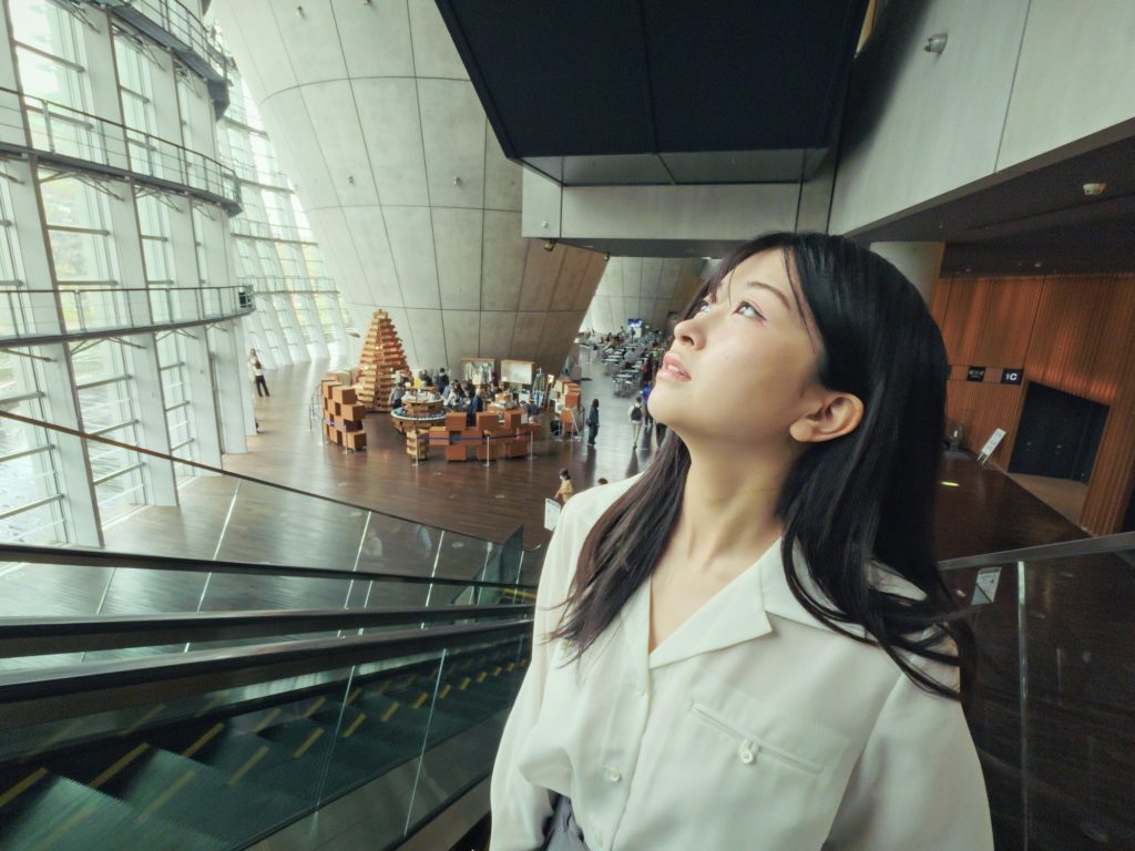 女優の西東しおりさんに協力いただき、国立新美術館でテスト撮影してみました。