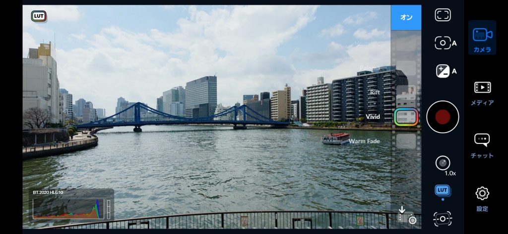 Blackmagic Cameraアプリでも独自のLUTをチョイスできる。こちらは解像度の制限はないようだ。