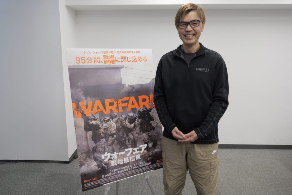 メガホンをとったレイ・メンドーサ監督の実際の戦場での体験をもとに制作された映画『ウォーフェア 戦地最前線』。最先端の光学・映像処理技術を採用したドルビービジョンとこれまでにないリアルなサウンドが特徴のドルビーアトモスの両技術が合わさったドルビーシネマでも公開中だ。実際に戦場にいるかのようなかつてない臨場感を体感できる本作の“音”についての印象などについて、ドルビーサウンドコンサルタント・河東 努さんに詳しく伺った。