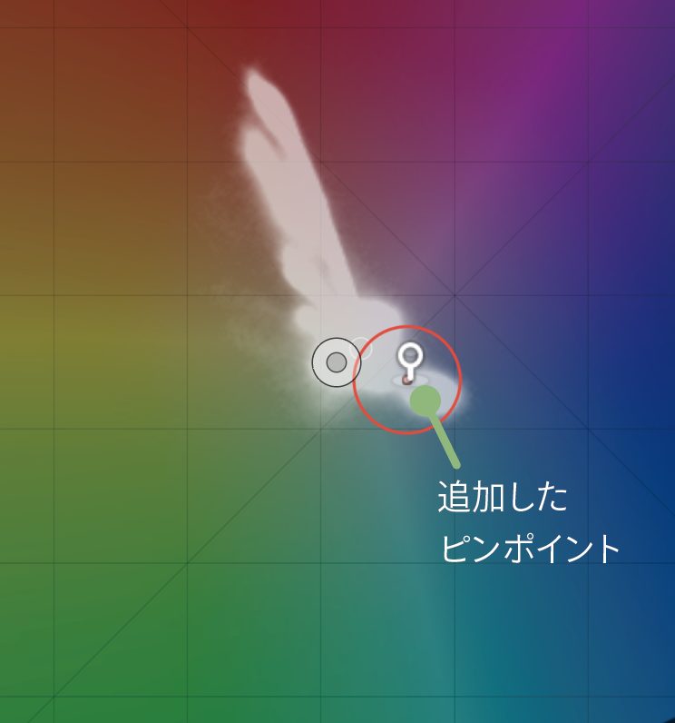 他に「ピンポイントを追加」ツールがあり、変更したくない色をクリックしてピンを打つとその色は固定され、「ストロークを追加」ツールを動かしても、その色は動かずに固定されます。
