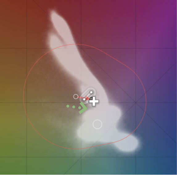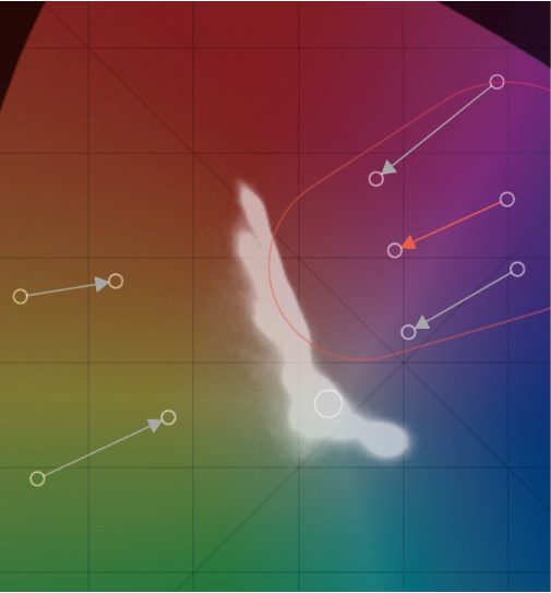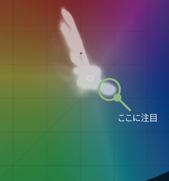使い方はシンプルです。ビューア画面上をマウスオーバーすると該当する色と彩度のポイントが表示され、そのままビューア上をクリックするとストロークが追加されて選択でき、あとは選んだポイントをドラッグして移動し、色や彩度を変更します。